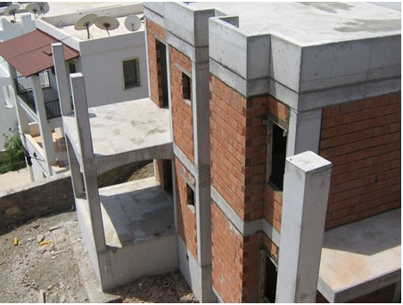 28- Tuğla duvarı bitmiş kaba yapının dış cephe görüntüsü: